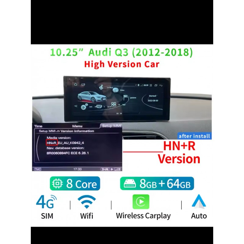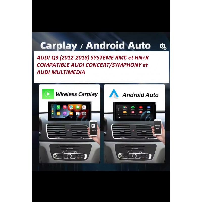 Ecran-Lecteur Système multimédia Carplay Android auto GPS Bluetooth Usb WIFI 4G de très bonne qualités pour AUDI Q3 (2012 à 2018) Système RMC ou HN+R avec une caméra de recul , microphone externe et WIFI